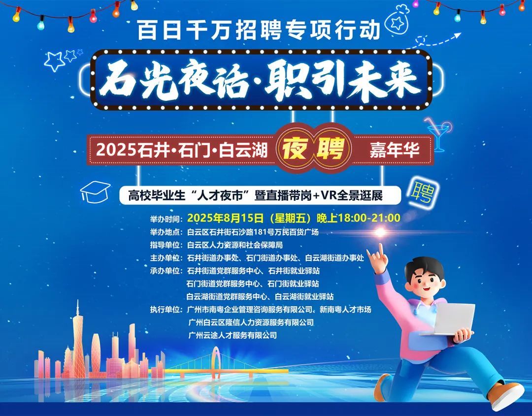 百日千万专项招聘行动“石光夜话·职引未来”——2025石井石门白云湖“夜聘”嘉年华高校毕业生“人才夜市”暨直播带岗+VR全景逛展活动